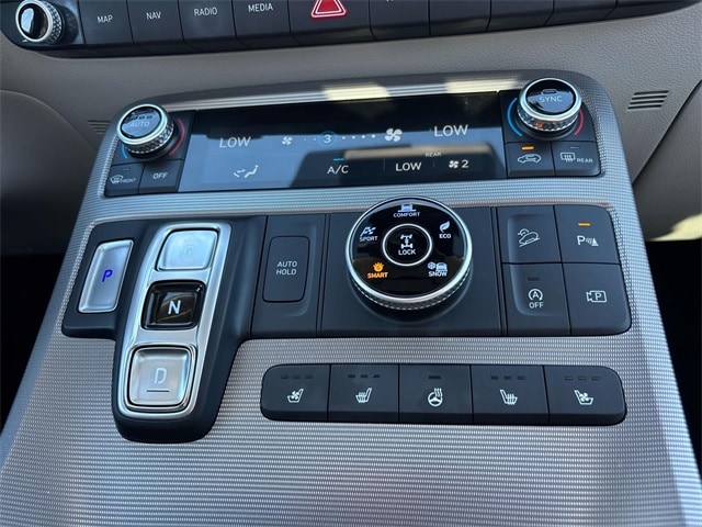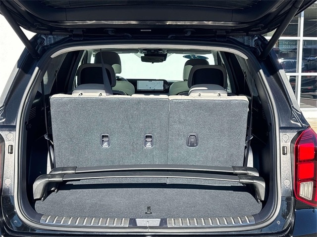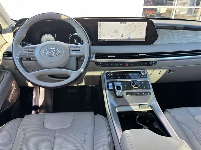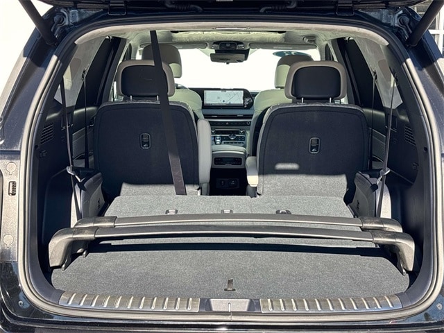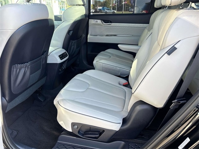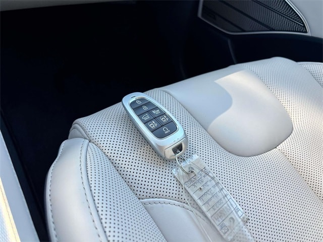 12 Speakers, 3.648 Axle Ratio, 3rd row seats: split-bench, 4-Wheel Disc Brakes, ABS brakes, Air Conditioning, Alloy wheels, AM/FM radio: SiriusXM, Apple CarPlay & Android Auto, Auto High-beam Headlights, Auto-dimming door mirrors, Auto-dimming Rear-View mirror, Auto-leveling suspension, Automatic temperature control, Brake assist, Bumpers: body-color, Cargo Net, Carpeted Floor Mats, Compass, Delay-off headlights, Driver door bin, Driver vanity mirror, Dual front impact airbags, Dual front side impact airbags, Electronic Stability Control, Emergency communication system: Blue Link Connected Car Service (3-year complimentary subscription), Exterior Parking Camera Rear, Four wheel independent suspension, Front anti-roll bar, Front Bucket Seats, Front Center Armrest, Front dual zone A/C, Front reading lights, Fully automatic headlights, Garage door transmitter: HomeLink, harman/kardon® Speakers, Heads-Up Display, Heated & Ventilated Front Bucket Seats, Heated door mirrors, Heated front seats, Heated rear seats, Heated steering wheel, Illuminated entry, Knee airbag, Low tire pressure warning, Memory seat, Navigation System, Occupant sensing airbag, Option Group 01, Outside temperature display, Overhead airbag, Overhead console, Panic alarm, Passenger door bin, Passenger vanity mirror, Power door mirrors, Power driver seat, Power Liftgate, Power moonroof, Power passenger seat, Power steering, Power windows, Premium Nappa Leather Seat Trim, Radio data system, Radio: AM/FM/MP3 Premium Audio System, Rain sensing wipers, Rear air conditioning, Rear anti-roll bar, Rear audio controls, Rear Bumper Applique, Rear reading lights, Rear side impact airbag, Rear window defroster, Rear window wiper, Reclining 3rd row seat, Remote keyless entry, Security system, Speed control, Speed-sensing steering, Split folding rear seat, Spoiler, Steering wheel mounted audio controls, Tachometer, Telescoping steering wheel, Tilt steering wheel, Traction control, Trip computer, Turn signal indicator mirrors, Variably intermittent wipers, Ventilated front seats, Ventilated rear seats, Wheel Locks, Wheels: 20" x 7.5J Calligraphy Exclusive Alloy.