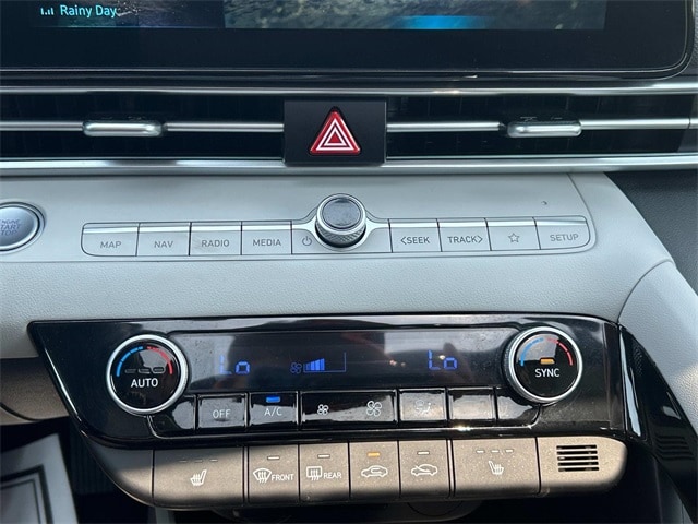 17" x 7.0J Alloy Wheels, 4-Wheel Disc Brakes, 8 Speakers, ABS brakes, Air Conditioning, Alloy wheels, AM/FM radio: SiriusXM, Apple CarPlay & Android Auto, Auto High-beam Headlights, Auto-dimming Rear-View mirror, Automatic temperature control, Brake assist, Bumpers: body-color, Delay-off headlights, Driver door bin, Driver vanity mirror, Dual front impact airbags, Dual front side impact airbags, Electronic Stability Control, Emergency communication system: Bluelink+, Front anti-roll bar, Front Bucket Seats, Front Center Armrest, Front dual zone A/C, Front reading lights, Front wheel independent suspension, Fully automatic headlights, H-Tex Leatherette Seats, Heated door mirrors, Heated Front Bucket Seats, Heated front seats, Illuminated entry, Leather steering wheel, Low tire pressure warning, Navigation System, Occupant sensing airbag, Option Group 01, Outside temperature display, Overhead airbag, Overhead console, Panic alarm, Passenger door bin, Passenger vanity mirror, Power door mirrors, Power driver seat, Power moonroof, Power steering, Power windows, Radio: AM/FM/HD/SiriusXM Display Audio, Rear seat center armrest, Rear side impact airbag, Rear window defroster, Remote keyless entry, Security system, Speed control, Speed-sensing steering, Split folding rear seat, Steering wheel mounted audio controls, Tachometer, Telescoping steering wheel, Tilt steering wheel, Traction control, Trip computer, Turn signal indicator mirrors, Variably intermittent wipers. 30/39 City/Highway MPG
