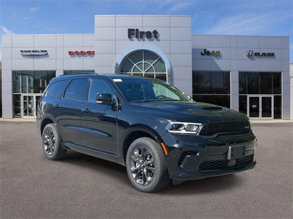 First Chrysler Dodge Jeep is honored to offer this terrific 2026 Dodge Durango GT Plus in DB Black Crystal Clearcoat Beautifully equipped with Blacktop Package (Black Roof Rails, Gloss Black Badges, Gloss Black Exterior Mirrors, GT Gloss Black Badging, Integrated Roof Rail Crossbars, Satin Black Dodge Tail Lamp Badge, and Wheels: 20" x 8" Black Noise Aluminum), Quick Order Package 2BH GT Plus (115V Auxiliary Power Outlet, 180 Amp Alternator, 506 Watt Amplifier, 7 & 4 Pin Wiring Harness, 9 Alpine Amplified Speakers w/Subwoofer, Adaptive Cruise Control w/Stop, Advanced Brake Assist, Auto High Beam Headlamp Control, Auto-Dimming Exterior Driver Mirror, Blind Spot w/Trailer Detection, Bright Cargo Area Scuff Pads, Class IV Receiver Hitch, Dual Remote USB Port - Charge Only, Exterior Mirrors w/Heating Element, Exterior Mirrors w/Memory, Exterior Mirrors w/Supplemental Signals, Full Speed Forward Collision Warning Plus, Heated Second Row Seats, Heavy-Duty Engine Cooling, Lane Departure Warning Plus, Leather Trimmed Bucket Seats, Leather Wrapped Door Panels, LED Auxiliary Low Beam & Turn Signal, ParkSense Front/Rear Park Assist w/Stop, Power 6x9 Multi-Function Foldaway Mirrors, Power 8-Way Driver Memory 8-Way Passenger Seats, Power Driver/Passenger 4-Way Lumbar Adjust, Power Sunroof, Power Tilt & Telescopic Steering Column, Rear Load Leveling Suspension, Red Accent Stitching, Security Alarm, Sun Visors w/Illuminated Vanity Mirrors, Trailer Brake Control, Ventilated Front Seats, and Wireless Charging Pad), AWD, 3.45 Rear Axle Ratio, 3rd row seats: split-bench, 4-Wheel Disc Brakes, 6 Speakers, ABS brakes, Air Conditioning, Alloy wheels, AM/FM radio: SiriusXM w/360L, Apple CarPlay/Android Auto, Auto-dimming Rear-View mirror, Automatic temperature control, Brake assist, Bumpers: body-color, Cloth Bucket Seats w/Shift Insert, Compass, Cruise Control, Delay-off headlights, Driver door bin, Driver vanity mirror, Dual front impact airbags, Dual front side impact airbags, Electronic Stability Control, Emergency communication system: Dodge Connect, Four wheel independent suspension, Front anti-roll bar, Front Bucket Seats, Front Center Armrest w/Storage, Front dual zone A/C, Front License Plate Bracket, Front reading lights, Fully automatic headlights, Garage door transmitter, Heated door mirrors, Heated front seats, Heated steering wheel, Illuminated entry, Knee airbag, Leather steering wheel, Low tire pressure warning, Navigation System, Occupant sensing airbag, Outside temperature display, Overhead airbag, Overhead console, Panic alarm, ParkView Rear Back-Up Camera, Passenger door bin, Passenger vanity mirror, Power door mirrors, Power driver seat, Power Liftgate, Power steering, Power windows, Radio data system, Radio: Uconnect 5 Nav w/10.1" Display, Rear air conditioning, Rear anti-roll bar, Rear reading lights, Rear seat center armrest, Rear window defroster, Rear window wiper, Remote keyless entry, Speed-sensing steering, Speed-Sensitive Wipers, Split folding rear seat, Spoiler, Sport steering wheel, Steering wheel mounted audio controls, Tachometer, Telescoping steering wheel, Tilt steering wheel, Traction control, Trip computer, Variably intermittent wipers, Voltmeter, and Wheels: 20" x 8" Fine Silver!