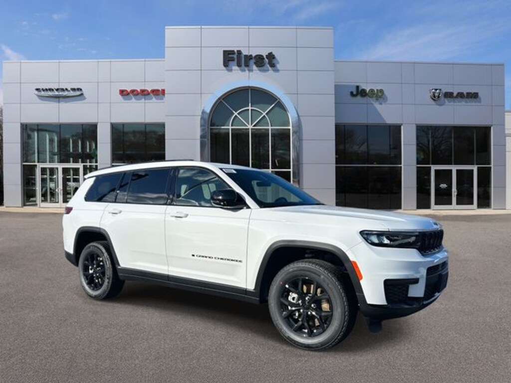 First Chrysler Dodge Jeep is delighted to offer this attractive 2025 Jeep Grand Cherokee L Altitude X in Bright White Clearcoat Beautifully equipped with Quick Order Package 23M Altitude X (115V Auxiliary Power Outlet, 3rd Row Charge-Only USB Ports, Altitude X, Black Headliner, Capri Leatherette/Suede Seats, Delete Laredo Badge, Gloss Black Exterior Accents, Heated Front Seats, Heated Steering Wheel, Power Liftgate, Power Sunroof, Rain Sensitive Windshield Wipers, Remote Start System, Selectable Tire Fill Alert, Wheels: 18" x 8.0" Fully Painted Aluminum 1, and Wireless Charging Pad), 3.45 Rear Axle Ratio, 3rd row seats: split-bench, 4-Wheel Disc Brakes, 6 Speakers, ABS brakes, Air Conditioning, Alloy wheels, AM/FM radio: SiriusXM, Anti-whiplash front head restraints, Automatic temperature control, Brake assist, Bumpers: body-color, Cloth Seats, Compass, Cruise Control, Delay-off headlights, Driver door bin, Driver vanity mirror, Dual front impact airbags, Dual front side impact airbags, Electronic Stability Control, Emergency communication system, Four wheel independent suspension, Front anti-roll bar, Front Bucket Seats, Front Center Armrest w/Storage, Front dual zone A/C, Front License Plate Bracket, Front reading lights, Fully automatic headlights, Heated door mirrors, Illuminated entry, Knee airbag, Low tire pressure warning, Manual Fold Seatbacks, Model Year Tracking, Normal Duty Suspension, Occupant sensing airbag, Outside temperature display, Overhead airbag, Overhead console, Panic alarm, ParkView Rear Back-Up Camera, Passenger door bin, Passenger vanity mirror, Power door mirrors, Power driver seat, Power steering, Power windows, Radio data system, Radio: Uconnect 5 with 8.4" Display, Rear air conditioning, Rear anti-roll bar, Rear reading lights, Rear window defroster, Rear window wiper, Reclining 3rd row seat, Remote keyless entry, Security system, Speed-Sensitive Wipers, Split folding rear seat, Spoiler, Steering wheel mounted audio controls, Tachometer, Telescoping steering wheel, Tilt steering wheel, Traction control, Trip computer, Variably intermittent wipers, Voltmeter, and Wheels: 18" x 8.0" Fully Painted Aluminum!