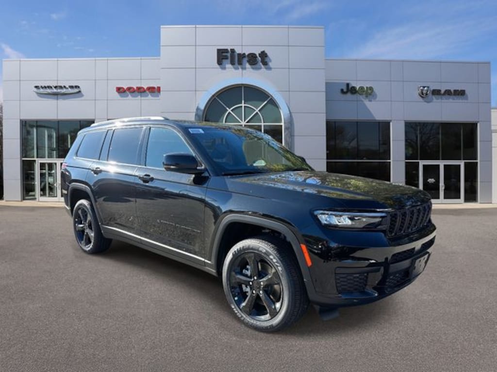 First Chrysler Dodge Jeep is proud to offer this terrific 2025 Jeep Grand Cherokee L Altitude X in Diamond Black Crystal Pearlcoat Beautifully equipped with Quick Order Package 23M Altitude X (115V Auxiliary Power Outlet, 3rd Row Charge-Only USB Ports, Altitude X, Black Headliner, Capri Leatherette/Suede Seats, Delete Laredo Badge, Gloss Black Exterior Accents, Heated Front Seats, Heated Steering Wheel, Power Liftgate, Power Sunroof, Rain Sensitive Windshield Wipers, Remote Start System, Selectable Tire Fill Alert, Wheels: 18" x 8.0" Fully Painted Aluminum 1, and Wireless Charging Pad), 2nd Row 60/40 Bench with Manual Tip/Slide, 2nd Row Seat Center Armrest/Cupholders, 3 Rear Seat Head Restraints, 3.45 Rear Axle Ratio, 3rd row seats: split-bench, 4-Wheel Disc Brakes, 6 Speakers, 7-Passenger Seating, ABS brakes, Air Conditioning, Alloy wheels, AM/FM radio: SiriusXM, Anti-whiplash front head restraints, Automatic temperature control, Brake assist, Bumpers: body-color, Center Rear 3-Point Seat Belt, Cloth Seats, Compass, Cruise Control, Delay-off headlights, Driver door bin, Driver vanity mirror, Dual front impact airbags, Dual front side impact airbags, Electronic Stability Control, Emergency communication system, Four wheel independent suspension, Front anti-roll bar, Front Bucket Seats, Front Center Armrest w/Storage, Front dual zone A/C, Front License Plate Bracket, Front reading lights, Fully automatic headlights, Heated door mirrors, Illuminated entry, Knee airbag, Low tire pressure warning, Manual Fold Seatbacks, Model Year Tracking, Normal Duty Suspension, Occupant sensing airbag, Outside temperature display, Overhead airbag, Overhead console, Panic alarm, ParkView Rear Back-Up Camera, Passenger door bin, Passenger vanity mirror, Power door mirrors, Power driver seat, Power steering, Power windows, Radio data system, Radio: Uconnect 5 with 8.4" Display, Rear air conditioning, Rear anti-roll bar, Rear reading lights, Rear window defroster, Rear window wiper, Reclining 3rd row seat, Remote keyless entry, Security system, Speed-Sensitive Wipers, Split folding rear seat, Spoiler, Steering wheel mounted audio controls, Tachometer, Telescoping steering wheel, Tilt steering wheel, Traction control, Trip computer, Variably intermittent wipers, Voltmeter, Wheels: 18" x 8.0" Fully Painted Aluminum, and Wheels: 20" x 8.5" Gloss Black Painted Aluminum!