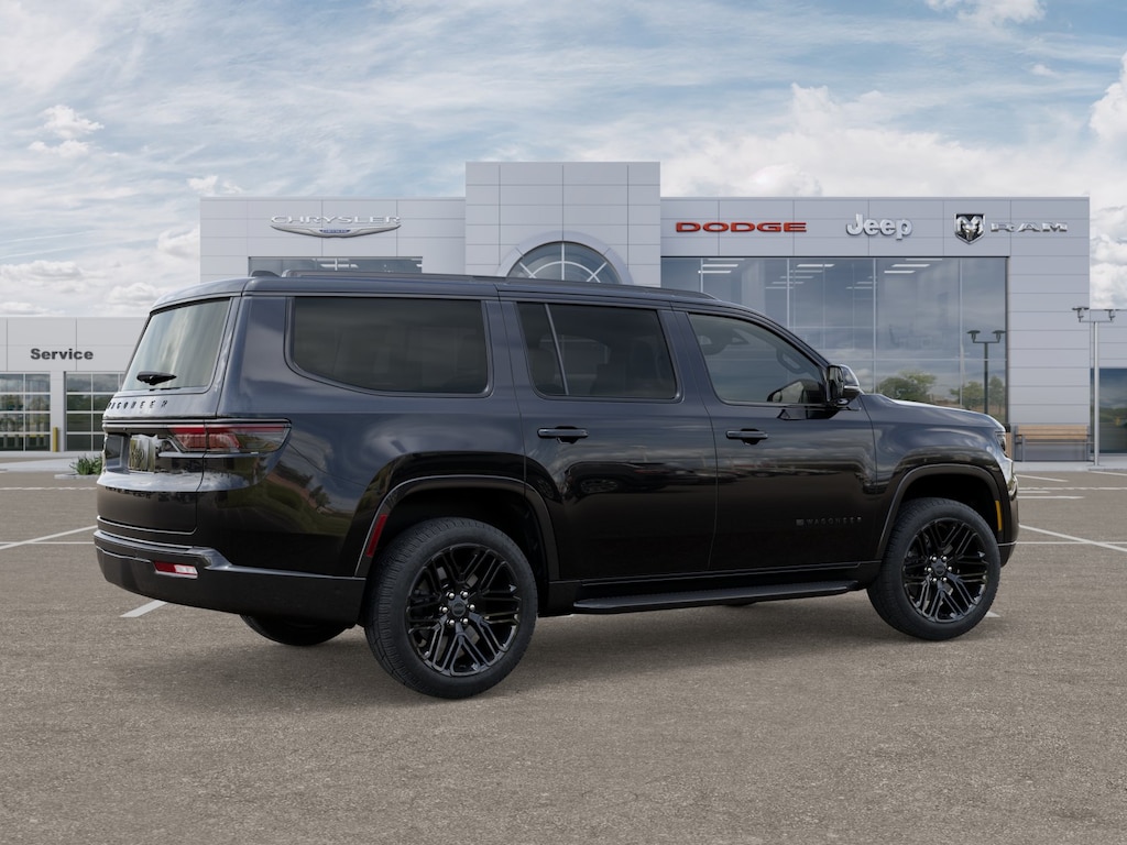First Chrysler Dodge Jeep is proud to offer this gorgeous-looking 2025 Jeep Wagoneer Series II in Diamond Black Crystal Pearlcoat Beautifully equipped with Carbide Appearance Package, Convenience Group I (DISC) (2nd Row Manual Window Shades, Auto Adjust In Reverse Exterior Mirrors, Auto High Beam Headlamp Control, Auto Power Folding Exterior Mirrors, Auto Power-Folding Mirrors, Auto-Dimming Exterior Driver Mirror, Drowsy Driver Detection, Exterior Mirrors Approach Lamps, Exterior Mirrors w/Memory, Exterior Mirrors w/Supplemental Signals, Heads-Up Display, Heated Exterior Mirrors, Intersection Collision Assist System, P&P Park & Unpark Assist w/Stop System, Quadra-Lift Air Suspension, Semi Active Damping, Side Distance Warning, Surround View Camera System, and Traffic Sign Recognition), HD Trailer Tow Package (Heavy-Duty Engine Cooling, Trailer Brake Control, and Trailer Hitch Zoom), Quick Order Package 25F Carbide (Black Exterior Accents and Wheels: 20" x 9" Gloss Black Painted Aluminum), 10 Speakers, 118 MPH Maximum Speed Calibration, 3rd row seats: bench, 4-Wheel Disc Brakes, ABS brakes, Air Conditioning, Alloy wheels, AM/FM radio: SiriusXM with 360L, Anti-whiplash front head restraints, Apple CarPlay/Android Auto, Audio memory, Auto-dimming door mirrors, Auto-dimming Rear-View mirror, Auto-leveling suspension, Automatic temperature control, Brake assist, Bumpers: body-color, Compass, Cruise Control, Delay-off headlights, Driver door bin, Driver vanity mirror, Driver's Seat Mounted Armrest, Dual front impact airbags, Dual front side impact airbags, Electronic Stability Control, Emergency communication system: Jeep Connect, Four wheel independent suspension, Front anti-roll bar, Front Bucket Seats, Front Center Armrest w/Storage, Front dual zone A/C, Front fog lights, Front License Plate Bracket, Front reading lights, Fully automatic headlights, Garage door transmitter, Genuine wood console insert, Genuine wood dashboard insert, Genuine wood door panel insert, Heated door mirrors, Heated front seats, Heated rear seats, Heated steering wheel, Illuminated entry, Knee airbag, Leather Trimmed Bucket Seats, Low tire pressure warning, Memory seat, Navigation System, Normal Duty Suspension, Occupant sensing airbag, Outside temperature display, Overhead airbag, Overhead console, Panic alarm, ParkView Rear Back-Up Camera, Passenger door bin, Passenger seat mounted armrest, Passenger vanity mirror, Power adjustable front head restraints, Power door mirrors, Power driver seat, Power Liftgate, Power passenger seat, Power steering, Power windows, Radio data system, Radio: Uconnect 5 Nav w/10.1" Display, Rain sensing wipers, Rear air conditioning, Rear anti-roll bar, Rear dual zone A/C, Rear reading lights, Rear seat center armrest, Rear window defroster, Rear window wiper, Reclining 3rd row seat, Remote keyless entry, Security system, Speed-sensing steering, Speed-Sensitive Wipers, Split folding rear seat, Steering wheel memory, Steering wheel mounted audio controls, Tachometer, Telescoping steering wheel, Tilt steering wheel, Traction control, Trip computer, Turn signal indicator mirrors, Variably intermittent wipers, Ventilated front seats, Voltmeter, Wheels: 20" x 9.0" Premium 2 Aluminum, and Wheels: 22" x 9.0" Painted Gloss Black!