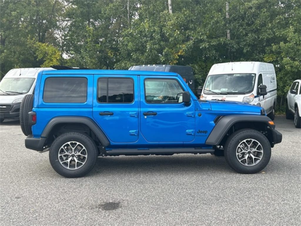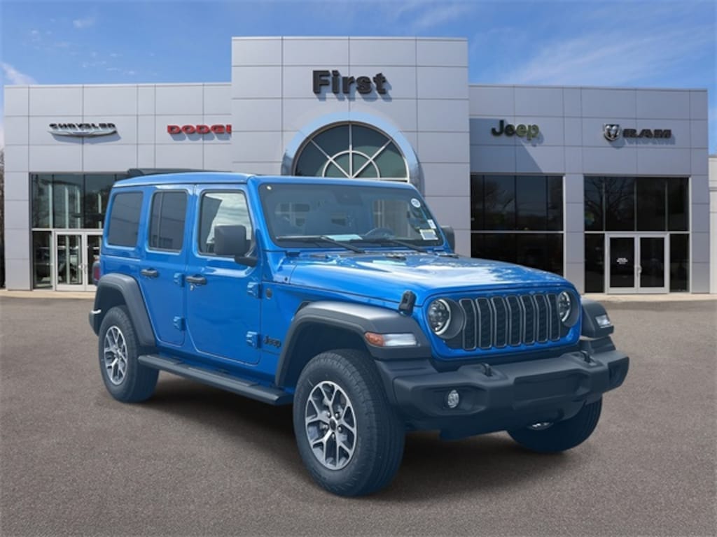 First Chrysler Dodge Jeep is proud to offer this stunning-looking and fun 2025 Jeep Wrangler Sport S in Hydro Blue Pearl Coat Beautifully equipped with Convenience Group (2-Door Passive Entry, Front Door Locks, Air Conditioning w/Auto Temperature Control, Air Filtering, Cluster 7.0" TFT Color Display, Emergency/Assistance Call, Heated Front Seats, Heated Steering Wheel, Remote Start System, and Universal Garage Door Opener), LED Headlamp & Fog Lamp Group (Front LED Fog Lamps and LED Premium Reflector Headlamps), Quick Order Package 24S Sport S (Advanced Brake Assist, Automatic Headlamps, Corning Gorilla Glass, Deep Tint Sunscreen Windows, Enhanced Adaptive Cruise Control, Full Speed Forward Collision Warning Plus, Power Heated Mirrors, Premium Wrapped Steering Wheel, Security Alarm, Sun Visors w/Illuminated Vanity Mirrors, and Wheels: 17" x 7.5" Gray), 110 MPH Vehicle Max Speed Calibration, 3.45 Overall Top Gear Ratio, 4-Wheel Disc Brakes, 8 Speakers, ABS brakes, Air Conditioning, Alpine Premium Audio System, AM/FM radio: SiriusXM, Apple CarPlay/Android Auto, Aux Battery, Brake assist, Cloth Low-Back Bucket Seats, Compass, Cruise Control, Delay-off headlights, Driver door bin, Driver vanity mirror, Dual front impact airbags, Dual front side impact airbags, Electronic Stability Control, Front anti-roll bar, Front Bucket Seats, Front Center Armrest w/Storage, Front fog lights, Front reading lights, Illuminated entry, Integrated roll-over protection, Low tire pressure warning, MOPAR All-Weather Floor Mats, Mopar Black Tubular Side Steps, Non-Lock Fuel Cap w/o Discriminator, Normal Duty Suspension, Occupant sensing airbag, Outside temperature display, Overhead airbag, Panic alarm, ParkView Rear Back-Up Camera, Passenger door bin, Passenger vanity mirror, Power steering, Power Top Quarter Window Storage Bag, Power windows, Radio data system, Radio: Uconnect 5 w/12.3" Display, Rear anti-roll bar, Rear reading lights, Rear Window Defroster, Rear Window Wiper/Washer, Remote keyless entry, Removable Rear Quarter Windows, Sky 1-Touch Power Top, Split folding rear seat, Steering wheel mounted audio controls, Stop-Start Dual Battery System, Tachometer, Telescoping steering wheel, Tilt steering wheel, Traction control, Trip computer, Variably intermittent wipers, Wheels: 17" x 7.5" Black Steel Styled, and Wheels: 17" x 7.5" Machined w/Black Pockets!