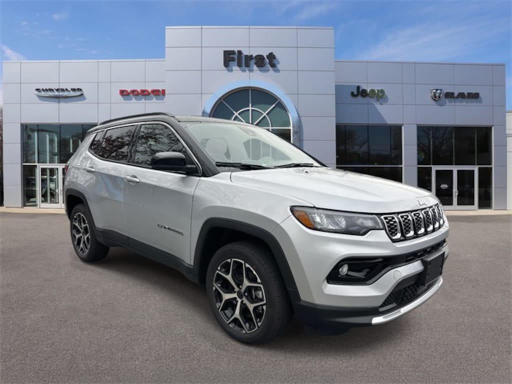 First Chrysler Dodge Jeep is delighted to offer this terrific 2026 Jeep Compass Limited in Silver Zynith Metallic Clearcoat Beautifully equipped with Quick Order Package 29G Limited, Sun, Sound and Navigation Group (10.1" Touchscreen Display, Alexa Built-In, Cluster 10.25" TFT Color Display, Connected Travel and Traffic Services, GPS Navigation, HD Radio, Integrated Voice Command with Bluetooth, Power Front/Fixed Rear Full Sunroof, Premium Alpine Speaker System, and SiriusXM with 360L), 4WD, 3.73 Final Drive Ratio, 4-Wheel Disc Brakes, 4G LTE Wi-Fi Hot Spot, 6 Speakers, ABS brakes, Air Conditioning, Alloy wheels, AM/FM radio: SiriusXM, Auto High-beam Headlights, Auto-dimming Rear-View mirror, Automatic temperature control, Brake assist, Bumpers: body-color, Compass, Cruise Control, Delay-off headlights, Driver door bin, Driver vanity mirror, Dual front impact airbags, Dual front side impact airbags, Electronic Stability Control, Emergency communication system: SiriusXM Guardian, Four wheel independent suspension, Front anti-roll bar, Front Bucket Seats, Front Center Armrest w/Storage, Front dual zone A/C, Front fog lights, Front License Plate Bracket, Front reading lights, Fully automatic headlights, Global Telematics Box Module, Heated door mirrors, Heated front seats, Heated steering wheel, Illuminated entry, Knee airbag, Leather Shift Knob, Leather steering wheel, Leatherette Seats, Low tire pressure warning, MyFlexCare Service Plan, Occupant sensing airbag, Outside temperature display, Overhead airbag, Overhead console, Panic alarm, ParkView Rear Back-Up Camera, Passenger door bin, Passenger vanity mirror, Power door mirrors, Power driver seat, Power Liftgate, Power steering, Power windows, Premium audio system: UConnect 5, Radio: Uconnect 5 with 10.1" Display, Rain sensing wipers, Rear anti-roll bar, Rear seat center armrest, Rear window defroster, Rear window wiper, Remote keyless entry, Security system, SiriusXM Guardian - Included Trail (B), SiriusXM Radio Service, Split folding rear seat, Spoiler, Steering wheel mounted audio controls, Tachometer, Telescoping steering wheel, Tilt steering wheel, Traction control, Trip computer, Turn signal indicator mirrors, Variably intermittent wipers, and Wheels: 18" x 7" Painted Diamond Cut Aluminum!