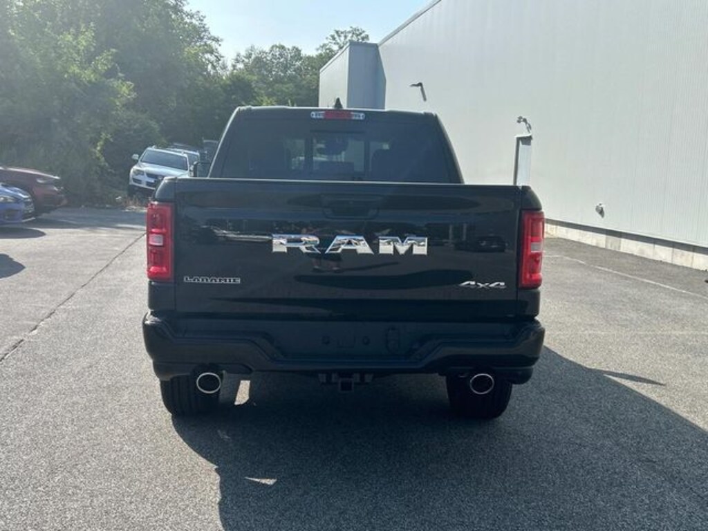 First Chrysler Dodge Jeep is delighted to offer this good-looking 2026 Ram 1500 Laramie in Diamond Black Crystal Pearlcoat Beautifully equipped with Laramie Level 1 Equipment Group (Rain Sensitive Windshield Wipers and Remote Tailgate Release), Quick Order Package 21H Laramie, Sport Appearance Package (Accent Color Premium Power Mirrors, Auto Power-Folding Mirrors, Auto-Dimming Exterior Driver Mirror, Black Interior Accents, Black Painted Exterior Mirrors Caps, Body Color Front Bumper, Body Color Rear Bumper with Step Pads, Bridgestone Brand Tires, Convex Wide-Angle Exterior Mirror Insert, Exterior Mirrors Courtesy Lamps, Exterior Mirrors with Heating Element, Exterior Mirrors with Memory, Exterior Mirrors with Supplemental Signals, Grille Surround 3 Body Color Tex 2 Black, RAM Grille Badge - Chrome, and Sport Performance Hood), 10 Speakers, 3.55 Rear Axle Ratio, 4-Wheel Disc Brakes, 4G LTE Wi-Fi Hot Spot, ABS brakes, Active Noise Control System, Adjustable pedals, Air Conditioning, Alloy wheels, AM/FM radio: SiriusXM with 360L, Apple CarPlay/Android Auto, Audio memory, Auto High-beam Headlights, Auto-dimming door mirrors, Auto-dimming Rear-View mirror, Automatic temperature control, Brake assist, Bumpers: chrome, Chrome Exterior Mirrors, Compass, Connected Travel and Traffic Services, Connectivity - US/Canada, Cruise Control, Delay-off headlights, Driver door bin, Driver vanity mirror, Dual front impact airbags, Dual front side impact airbags, Electronic Stability Control, Front anti-roll bar, Front Bucket Seats, Front Center Armrest w/Storage, Front dual zone A/C, Front fog lights, Front License Plate Bracket, Front reading lights, Front wheel independent suspension, Fully automatic headlights, Garage door transmitter, GPS Navigation, Heated door mirrors, Heated front seats, Heated rear seats, Heated steering wheel, Illuminated entry, Integrated Center Stack Radio, Integrated Voice Command with Bluetooth, Leather steering wheel, Leather Trimmed Bucket Seats, Low tire pressure warning, Manufacturer's Statement of Origin, Memory seat, MOPAR Front and Rear Rubber Floor Mats, Navigation System, Occupant sensing airbag, Off-Road Information Pages, Outside temperature display, Overhead airbag, Overhead console, Panic alarm, ParkView Rear Back-Up Camera, Passenger door bin, Passenger vanity mirror, Pedal memory, Power door mirrors, Power driver seat, Power passenger seat, Power steering, Power windows, Radio data system, Radio: Uconnect 5 Navigation with 12.0" Display, Rear anti-roll bar, Rear reading lights, Rear seat center armrest, Rear step bumper, Remote keyless entry, Security system, SiriusXM Radio Service, SiriusXM with 360L, Split folding rear seat, Steering wheel mounted audio controls, Tachometer, Telescoping steering wheel, Tilt steering wheel, Traction control, Trip computer, Turn signal indicator mirrors, USB Host Flip, Variably intermittent wipers, Ventilated front seats, Voltmeter, Wheel to Wheel Side Steps, and Wheels: 20" x 9" Premium Paint/Polish!