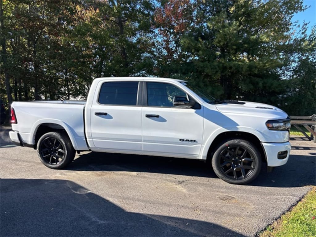 First Chrysler Dodge Jeep is pumped up to offer this fantastic-looking 2026 Ram 1500 Laramie in Bright White Clearcoat Beautifully equipped with Laramie Level 2 Equipment Group (4G LTE Wi-Fi Hot Spot, Cluster 12" TFT Color Display, Connected Travel & Traffic Services, Connectivity - US/Canada, GPS Navigation, harman/kardon 19 Speaker Premium Sound, Integrated Center Stack Radio, Integrated Voice Command w/Bluetooth, Power Tailgate, Radio: Uconnect 5 Nav w/14.4" Display, Rain Sensitive Windshield Wipers, SiriusXM Radio Service, SiriusXM w/360L, and USB Host Flip), Night Edition (Accent Color Door Handles, Accent Color Premium Power Mirrors, Accent Color Tailgate Handle, Anti-Spin Differential Rear Axle, Auto Power-Folding Mirrors, Auto-Dimming Exterior Driver Mirror, Black Exterior Truck Badging, Black Headlamp Bezels, Black Painted Exterior Mirrors Caps, Black Tail Lamp Bezels, Body Color Front Bumper, Body Color Rear Bumper w/Step Pads, Convex Wide-Angle Exterior Mirror Insert, Dual Exhaust w/Black Tips, Exterior Mirrors Approach Lamps, Exterior Mirrors Courtesy Lamps, Exterior Mirrors w/Heating Element, Exterior Mirrors w/Memory, Exterior Mirrors w/Supplemental Signals, Grille Surround 3 Black Texture 2 Black, Proximity Approach/Departure Lamps, RAM Grille Badge - Black, Sport Performance Hood, and Wheels: 22" x 9" Forged Aluminum), Quick Order Package 21H Laramie, 10 Speakers, 3.55 Rear Axle Ratio, 4-Wheel Disc Brakes, ABS brakes, Active Noise Control System, Air Conditioning, Alloy wheels, AM/FM radio: SiriusXM with 360L, Apple CarPlay/Android Auto, Audio memory, Auto High-beam Headlights, Auto-dimming door mirrors, Auto-dimming Rear-View mirror, Automatic temperature control, Brake assist, Bumpers: chrome, Chrome Exterior Mirrors, Compass, Cruise Control, Delay-off headlights, Driver door bin, Driver vanity mirror, Dual front impact airbags, Dual front side impact airbags, Electronic Stability Control, Front anti-roll bar, Front Bucket Seats, Front Center Armrest w/Storage, Front dual zone A/C, Front fog lights, Front License Plate Bracket, Front reading lights, Front wheel independent suspension, Fully automatic headlights, Garage door transmitter, Heated door mirrors, Heated front seats, Heated rear seats, Heated steering wheel, Illuminated entry, Leather steering wheel, Leather Trimmed Bucket Seats, Low tire pressure warning, Manufacturer's Statement of Origin, Memory seat, MOPAR Front & Rear Rubber Floor Mats, MyFlexCare Service Plan, Navigation System, Occupant sensing airbag, Off-Road Information Pages, Outside temperature display, Overhead airbag, Overhead console, Panic alarm, ParkView Rear Back-Up Camera, Passenger door bin, Passenger vanity mirror, Power door mirrors, Power driver seat, Power passenger seat, Power steering, Power windows, Radio data system, Radio: Uconnect 5 Nav w/12.0" Display, RAM Grille Badge - Chrome, Rear anti-roll bar, Rear reading lights, Rear seat center armrest, Rear step bumper, Remote keyless entry, Security system, Split folding rear seat, Steering wheel mounted audio controls, Tachometer, Telescoping steering wheel, Tilt steering wheel, Traction control, Trip computer, Turn signal indicator mirrors, Variably intermittent wipers, Ventilated front seats, Voltmeter, and Wheels: 20" x 9" Premium Paint/Polish!