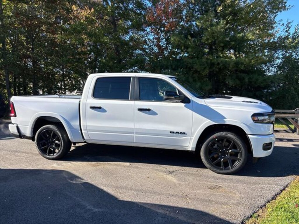 First Chrysler Dodge Jeep is proud to offer this superb-looking 2026 Ram 1500 Laramie in Bright White Clearcoat Beautifully equipped with Laramie Level 2 Equipment Group (14.4" Touchscreen Display, 4G LTE Wi-Fi Hot Spot, Cluster 12" TFT Color Display, Connected Travel and Traffic Services, Connectivity - US/Canada, Front Passenger Interactive Display, GPS Navigation, Harman/Kardon 19 Speaker Premium Sound, Integrated Center Stack Radio, Integrated Voice Command with Bluetooth, Power Tailgate, Radio: Uconnect 5 Nav with 14.4" Display, Rain Sensitive Windshield Wipers, SiriusXM Radio Service, SiriusXM with 360L, and USB Host Flip), Night Edition (Accent Color Door Handles, Accent Color Premium Power Mirrors, Accent Color Tailgate Handle, Anti-Spin Differential Rear Axle, Auto Power-Folding Mirrors, Auto-Dimming Exterior Driver Mirror, Black Exterior Truck Badging, Black Headlamp Bezels, Black Interior Accents, Black Painted Exterior Mirrors Caps, Black Tail Lamp Bezels, Body Color Front Bumper, Body Color Rear Bumper with Step Pads, Convex Wide-Angle Exterior Mirror Insert, Dual Exhaust with Black Tips, Exterior Mirrors Approach Lamps, Exterior Mirrors Courtesy Lamps, Exterior Mirrors with Heating Element, Exterior Mirrors with Memory, Exterior Mirrors with Supplemental Signals, Grille Surround 3 Black Texture 2 Black, Pirelli Brand Tires, Proximity Approach/Departure Lamps, RAM Grille Badge - Black, Sport Performance Hood, and Wheels: 22" x 9" Forged Aluminum), Quick Order Package 21H Laramie, 10 Speakers, 3.55 Rear Axle Ratio, 4-Wheel Disc Brakes, ABS brakes, Active Noise Control System, Adjustable pedals, Air Conditioning, Alloy wheels, AM/FM radio: SiriusXM with 360L, Apple CarPlay/Android Auto, Audio memory, Auto High-beam Headlights, Auto-dimming door mirrors, Auto-dimming Rear-View mirror, Automatic temperature control, Brake assist, Bumpers: chrome, Chrome Exterior Mirrors, Compass, Cruise Control, Delay-off headlights, Driver door bin, Driver vanity mirror, Dual front impact airbags, Dual front side impact airbags, Electronic Stability Control, Front anti-roll bar, Front Bucket Seats, Front Center Armrest w/Storage, Front dual zone A/C, Front fog lights, Front License Plate Bracket, Front reading lights, Front wheel independent suspension, Fully automatic headlights, Garage door transmitter, Heated door mirrors, Heated front seats, Heated rear seats, Heated steering wheel, Illuminated entry, Leather steering wheel, Leather Trimmed Bucket Seats, Low tire pressure warning, Manufacturer's Statement of Origin, Memory seat, MOPAR Front and Rear Rubber Floor Mats, MyFlexCare Service Plan, Navigation System, Occupant sensing airbag, Off-Road Information Pages, Outside temperature display, Overhead airbag, Overhead console, Panic alarm, ParkView Rear Back-Up Camera, Passenger door bin, Passenger vanity mirror, Pedal memory, Power door mirrors, Power driver seat, Power passenger seat, Power steering, Power windows, Radio data system, Radio: Uconnect 5 Navigation with 12.0" Display, RAM Grille Badge - Chrome, Rear anti-roll bar, Rear reading lights, Rear seat center armrest, Rear step bumper, Remote keyless entry, Security system, Split folding rear seat, Steering wheel mounted audio controls, Tachometer, Telescoping steering wheel, Tilt steering wheel, Traction control, Trip computer, Turn signal indicator mirrors, Variably intermittent wipers, Ventilated front seats, Voltmeter, and Wheels: 20" x 9" Premium Paint/Polish!