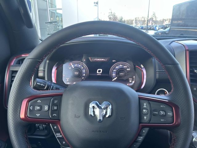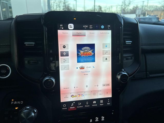 First Chrysler Dodge Jeep is pumped up to offer this terrific-looking 2026 Ram 1500 Rebel in Diamond Black Crystal Pearlcoat Beautifully equipped with Bed Utility Group (Exterior 115V AC Outlet, MOPAR 4 Adjustable Cargo Tie-Down Hooks, and MOPAR Spray in Bedliner), Quick Order Package 21W Rebel, Rebel Level 1 Equipment Group (Auto Power-Folding Mirrors, Auto-Dimming Exterior Driver Mirror, Black Exterior Mirrors, Black Premium Power Mirrors, Convex Wide-Angle Exterior Mirror Insert, Exterior Mirrors Courtesy Lamps, Exterior Mirrors with Heating Element, Exterior Mirrors with Supplemental Signals, Power Adjustable Pedals, Rear Window Defroster, Remote Tailgate Release, and Wireless Charging Pad), 10 Speakers, 3.92 Rear Axle Ratio, 4 Way Front Headrests, 4-Wheel Disc Brakes, 4G LTE Wi-Fi Hot Spot, ABS brakes, Active Noise Control System, Air Conditioning, Alloy wheels, AM/FM radio: SiriusXM with 360L, Apple CarPlay, Apple CarPlay/Android Auto, Auto High-beam Headlights, Auto-dimming Rear-View mirror, Automatic temperature control, Brake assist, Bucket Seats, Cloth/Vinyl Bucket Seats, Compass, Connected Travel and Traffic Services, Connectivity - US/Canada, Cruise Control, Delay-off headlights, Disassociated Touchscreen Display, Driver door bin, Driver vanity mirror, Dual front impact airbags, Dual front side impact airbags, Electronic Stability Control, Front anti-roll bar, Front Bucket Seats, Front Center Armrest w/Storage, Front dual zone A/C, Front fog lights, Front License Plate Bracket, Front reading lights, Front Seat Back Map Pockets, Front wheel independent suspension, Full Length Upgraded Floor Console, Fully automatic headlights, Garage door transmitter, Global Telematics Box Module, Google Android Auto, GPS Antenna Input, GPS Navigation, HD Radio, Heated door mirrors, Heated Front Seats, Heated front seats, Heated Steering Wheel, Heated steering wheel, Illuminated entry, Integrated Center Stack Radio, Integrated Voice Command with Bluetooth, Leather steering wheel, Low tire pressure warning, Manual Folding Exterior Mirrors, Manufacturer's Statement of Origin, Mopar Black Tubular Side Steps, MyFlexCare Service Plan, Navigation System, Occupant sensing airbag, Off-Road Information Pages, Outside temperature display, Overhead airbag, Overhead console, Panic alarm, ParkView Rear Back-Up Camera, Passenger door bin, Passenger vanity mirror, Power 2-Way Driver Lumbar Adjust, Power Adjust 8-Way Driver Seat, Power door mirrors, Power driver seat, Power steering, Power windows, Radio data system, Radio: Uconnect 5 Navigation with 12.0" Display, Rear 60/40 Folding Seat, Rear anti-roll bar, Rear seat center armrest, Rear step bumper, Remote keyless entry, SiriusXM Radio Service, SiriusXM with 360L, Split folding rear seat, Steering wheel mounted audio controls, Tachometer, Telescoping steering wheel, Tilt steering wheel, Traction control, Tri-Fold Tonneau Cover, Trip computer, USB Host Flip, Variably intermittent wipers, Voltmeter, and Wheels: 18" x 8.0" Painted Mid-Gloss Black!