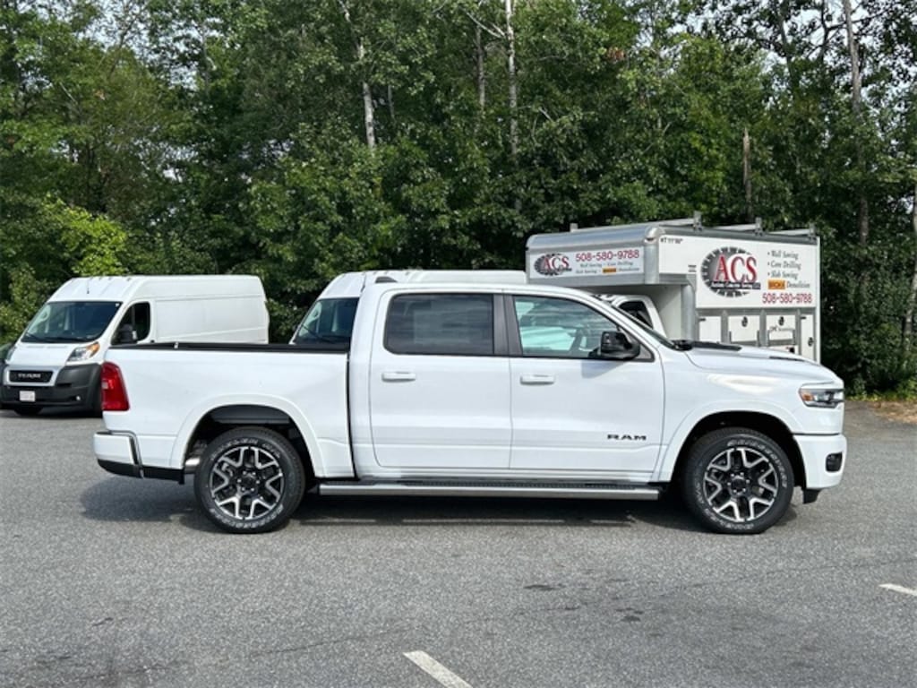 First Chrysler Dodge Jeep is proud to offer this terrific 2026 Ram 1500 Laramie in Bright White Clearcoat Beautifully equipped with Bed Utility Group (Exterior 115V AC Outlet, MOPAR 4 Adjustable Cargo Tie-Down Hooks, and MOPAR Spray In Bedliner), Laramie Level 1 Equipment Group (Rain Sensitive Windshield Wipers and Remote Tailgate Release), Quick Order Package 21H Laramie, Sport Appearance Package (Accent Color Premium Power Mirrors, Auto Power-Folding Mirrors, Auto-Dimming Exterior Driver Mirror, Black Interior Accents, Black Painted Exterior Mirrors Caps, Body Color Front Bumper, Body Color Rear Bumper w/Step Pads, Bridgestone Brand Tires, Convex Wide-Angle Exterior Mirror Insert, Exterior Mirrors Courtesy Lamps, Exterior Mirrors w/Heating Element, Exterior Mirrors w/Memory, Exterior Mirrors w/Supplemental Signals, Grille Surround 3 Body Color Tex 2 Black, RAM Grille Badge - Chrome, and Sport Performance Hood), 10 Speakers, 3.55 Rear Axle Ratio, 4-Wheel Disc Brakes, 4G LTE Wi-Fi Hot Spot, ABS brakes, Active Noise Control System, Air Conditioning, Alloy wheels, AM/FM radio: SiriusXM with 360L, Apple CarPlay/Android Auto, Audio memory, Auto High-beam Headlights, Auto-dimming door mirrors, Auto-dimming Rear-View mirror, Automatic temperature control, Brake assist, Bumpers: chrome, Chrome Exterior Mirrors, Compass, Connected Travel & Traffic Services, Connectivity - US/Canada, Cruise Control, Delay-off headlights, Driver door bin, Driver vanity mirror, Dual front impact airbags, Dual front side impact airbags, Electronic Stability Control, Front anti-roll bar, Front Bucket Seats, Front Center Armrest w/Storage, Front dual zone A/C, Front fog lights, Front License Plate Bracket, Front reading lights, Front wheel independent suspension, Fully automatic headlights, Garage door transmitter, GPS Navigation, Heated door mirrors, Heated front seats, Heated rear seats, Heated steering wheel, Illuminated entry, Integrated Center Stack Radio, Integrated Voice Command w/Bluetooth, Leather steering wheel, Leather Trimmed Bucket Seats, Low tire pressure warning, Manufacturer's Statement of Origin, Memory seat, MOPAR Front & Rear Rubber Floor Mats, Navigation System, Occupant sensing airbag, Off-Road Information Pages, Outside temperature display, Overhead airbag, Overhead console, Panic alarm, ParkView Rear Back-Up Camera, Passenger door bin, Passenger vanity mirror, Power door mirrors, Power driver seat, Power passenger seat, Power steering, Power windows, Radio data system, Radio: Uconnect 5 Nav w/12.0" Display, Rear anti-roll bar, Rear reading lights, Rear seat center armrest, Rear step bumper, Remote keyless entry, Security system, SiriusXM Radio Service, SiriusXM w/360L, Split folding rear seat, Steering wheel mounted audio controls, Tachometer, Telescoping steering wheel, Tilt steering wheel, Traction control, Trip computer, Turn signal indicator mirrors, USB Host Flip, Variably intermittent wipers, Ventilated front seats, Voltmeter, Wheel to Wheel Side Steps, and Wheels: 20" x 9" Premium Paint/Polish!