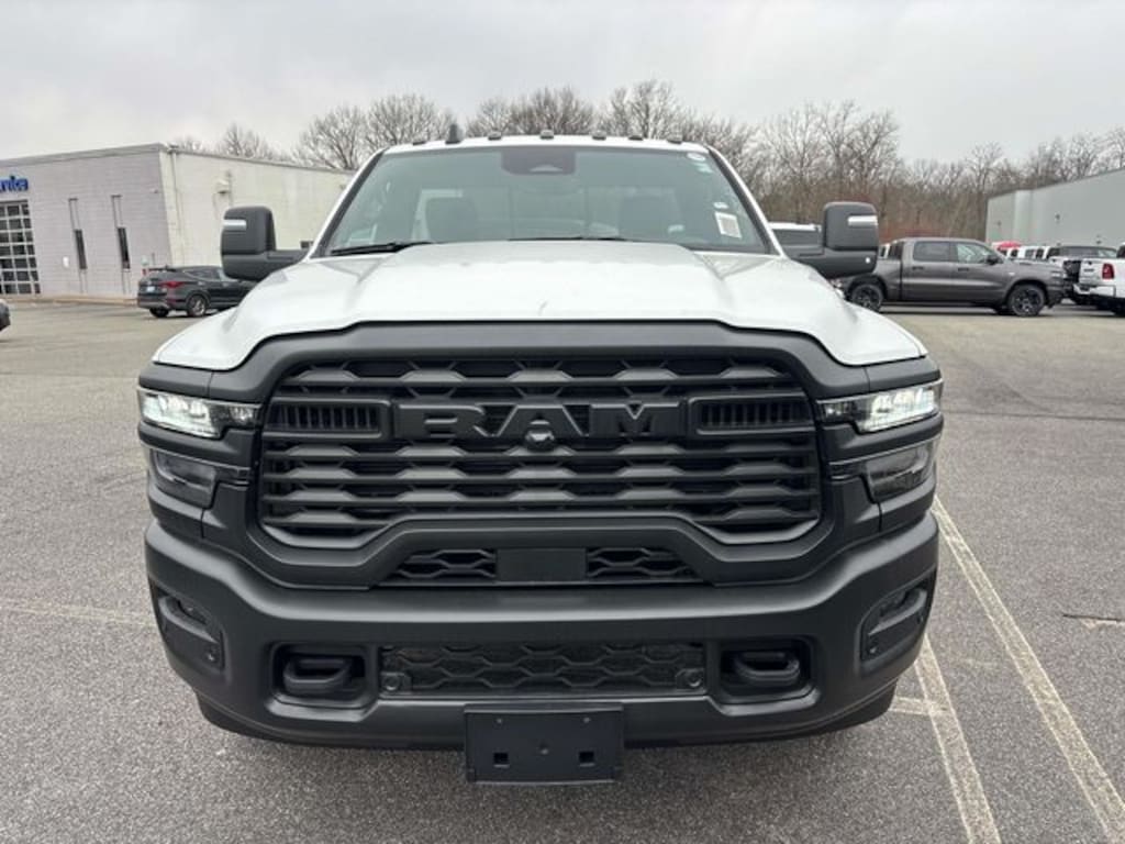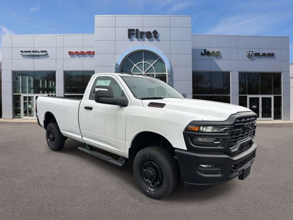 First Chrysler Dodge Jeep is honored to offer this charming 2026 Ram 2500 Tradesman in Bright White Clearcoat Beautifully equipped with Bed Convenience Group (LED Bed Lighting and MOPAR Spray in Bedliner), Commercial Features Package, Quick Order Package 2UA Tradesman, Tradesman Level 1 Equipment Group (115-Volt Auxiliary Front Power Outlet, 12" Touchscreen Display, 4 Way Front Headrests, 40/20/40 Split Bench Seat, 400W Inverter, 4G LTE Wi-Fi Hot Spot, 6 Speakers, Air Conditioning with Dual Zone Control, Alexa Built-in, Anti-Spin Differential Rear Axle, Apple CarPlay, Auto-Dimming Rear-View Mirror, Black Exterior Mirrors, Carpet Floor Covering, Cloth 40/20/40 Bench Seat, Connected Travel and Traffic Services, Connectivity - US/Canada, Convenience Group, Disassociated Touchscreen Display, Emergency Vehicle Alert System (EVAS), Exterior 115V AC Outlet, Exterior Mirrors Courtesy Lamps, Exterior Mirrors with Heating Element, Exterior Mirrors with Supplemental Signals, For Details Visit DriveUconnect.com, For More Info Call 800-643-2112, Front 1-Touch Down Power Windows, Front Armrest with Cupholders, Front Floor Mats, Global Telematics Box Module, Google Android Auto, GPS Antenna Input, GPS Navigation, HD Radio, Integrated Voice Command with Bluetooth, Manual Adjust 4-Way Driver Seat, Manual Adjust 4-Way Front Passenger Seat, Manual Folding Exterior Mirrors, Manual Telescoping Mirrors, Mirror Running Lights, Mopar Black Tubular Side Steps, Off-Road Info Pages, ParkSense Front/Rear Park Assist System, Power Adjust Mirrors, Power Heated Folding Telescopic Mirrors, Power-Adjustable Convex Aux Mirrors, Radio: Uconnect 5 Navigation with 12.0" Display, Rear Sliding Window, Remote Keyless Entry, Remote USB Port - Charge Only, Selectable Tire Fill Alert, SiriusXM Radio Service, SiriusXM with 360L, Speed Sensitive Power Locks, Tinted Acoustic Windshield Glass, Trailer Tow Pages, and Upgraded Door Trim Panel), 3.73 Axle Ratio, 4 Speakers, 4-Wheel Disc Brakes, ABS brakes, Air Conditioning, AM/FM radio: SiriusXM, Apple CarPlay/Android Auto, Black Wheel Center Hub, Brake assist, Clearance Lamps, Compass, Cruise Control, Delay-off headlights, Driver door bin, Dual front impact airbags, Dual front side impact airbags, Electronic Stability Control, Front anti-roll bar, Front Center Armrest w/Storage, Front fog lights, Front License Plate Bracket, Front reading lights, Fully automatic headlights, Heavy Duty Vinyl 40/20/40 Split Bench Seat, Illuminated entry, Low tire pressure warning, Manufacturer's Statement of Origin, MOPAR Front Rubber Floor Mats, MyFlexCare Service Plan, Occupant sensing airbag, Outside temperature display, Overhead airbag, Overhead console, ParkView Rear Back-Up Camera, Passenger door bin, Passenger vanity mirror, Power steering, Radio data system, Radio: Uconnect 5 with 8.4" Display, Rear anti-roll bar, Rear Backup Alarm, Rear step bumper, Tachometer, Tilt steering wheel, Traction control, Variably intermittent wipers, Voltmeter, and Wheels: 17" x 7.5" Black Steel Styled!